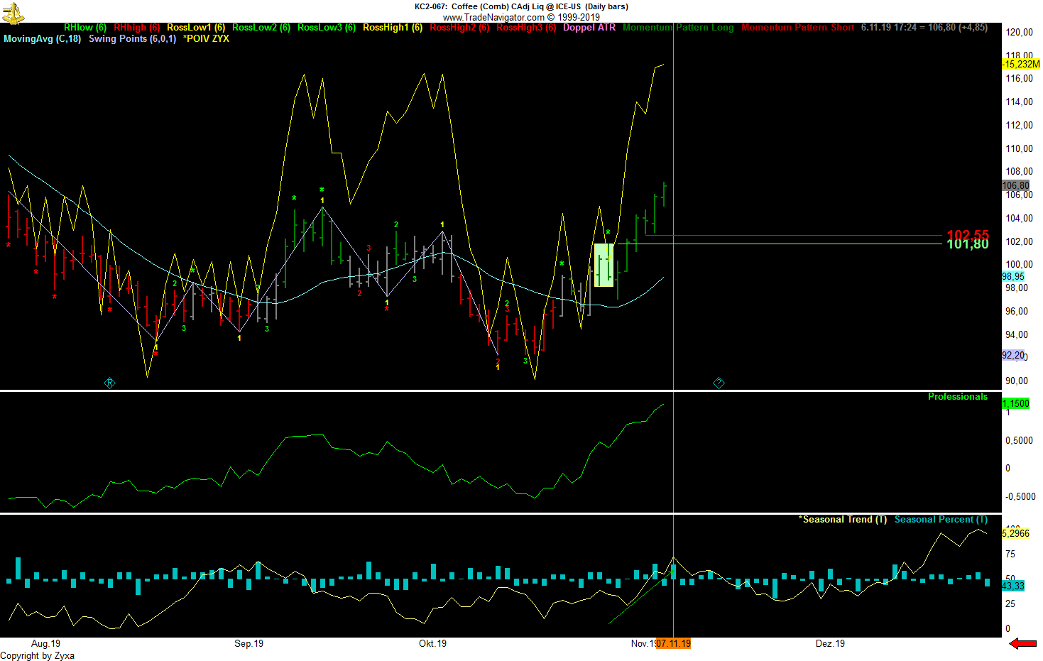Der POIV Indikator wurde von Larry Williams entwickelt, ich gehe jetzt nicht auf seine Funktion ein, daß kann ja jeder Interessierte gerne googeln......vorweg: es geht rein um Divergenzen Chart eins zeigt den YEN Future im Weekly mit dem POIV (blau im Chart Fenster) beim ersten Signal heuer im April war ein leichte Divergenz zu erkennen.......die aktuelle Divergenz ist viel stärker, dazu das starke open Interest zusammen mit Comm OI 100 ....zusammen also die fundamentale Voraussetzung für einen Bull im Yen......