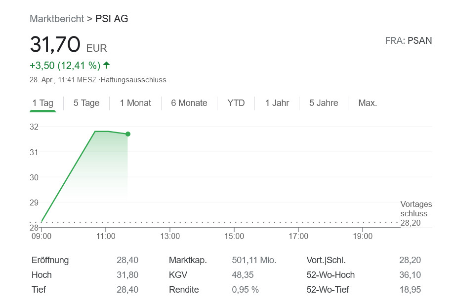 Softwarekonzern PSI. Im ersten Quartal ist das Betriebsergebnis (EBIT) um 77 Prozent auf 4,35 Millionen Euro in die Höhe geschnellt, der Auftragseingang hat den Rekordwert von 105 Millionen Euro erreicht.