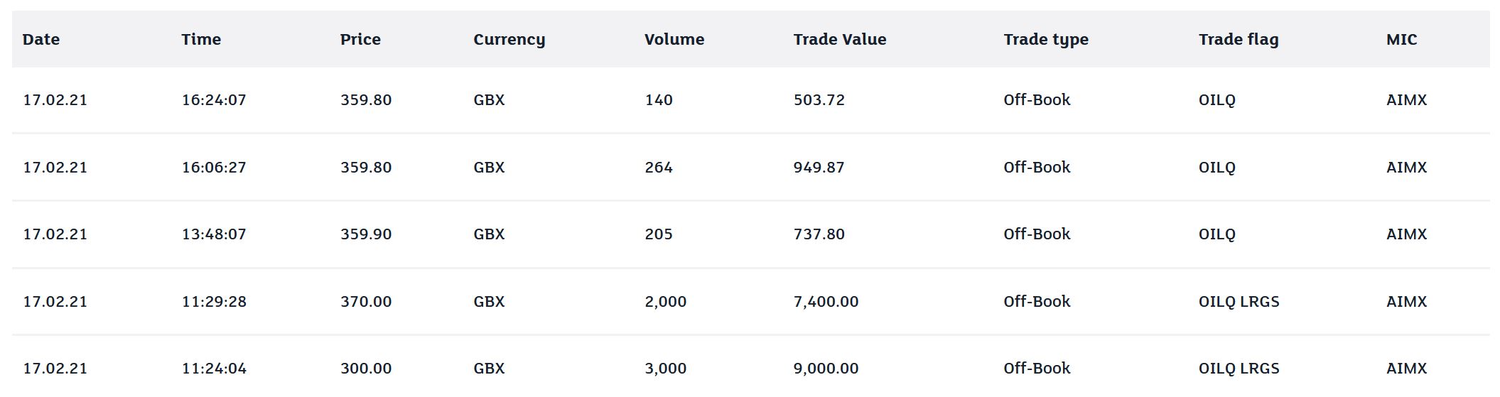 18.02.21 12:23 #907 Letzter Umsatz in London