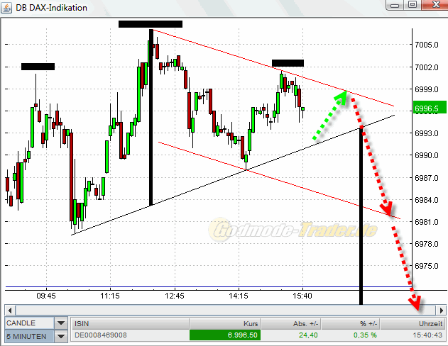 Der DAX dürfte wohl unter 7.000 Punkte schließen, nachdem der RSI und der FastStochastik den überkauften Bereich im daily-trading verlassen. Auf Wochen- und Monats-Sicht scheren diese beiden Indikatoren ebenfalls aus dem überkauften in den neutralen Bereich ein.