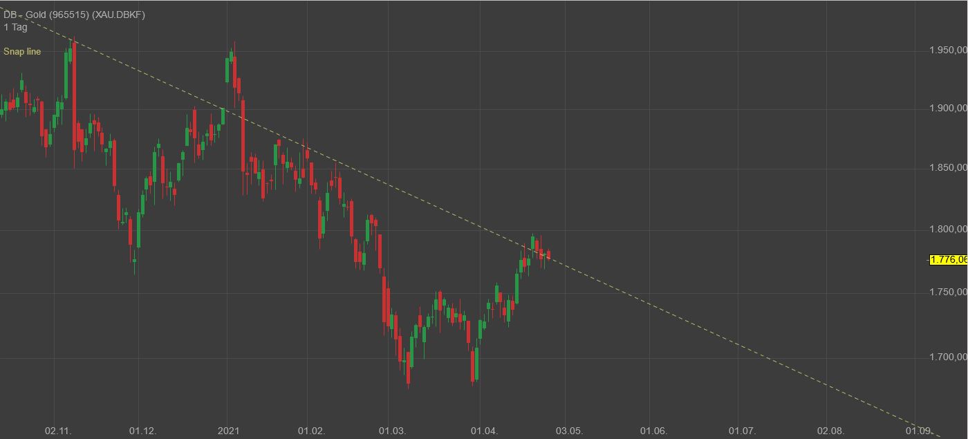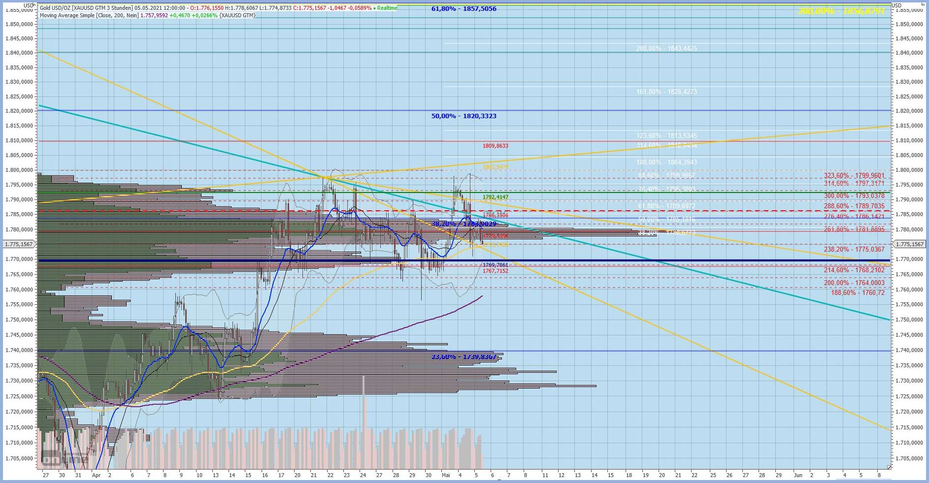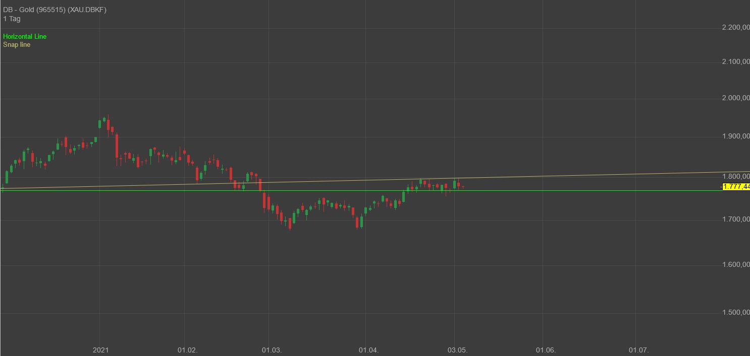 Dass wir es BISLANG nicht ÜBER die obere braune Linie schaften, ist bearish zu werten, schade. Denke nichts desto Trotz, der Kurs probiert ERSTMAL im Mai die nächste long Attacke. Die genannten long Ziele bei 1940/1960 bleiben insofern bestehen, wir haben ja damit bis fast Ende des Jahres Zeit.