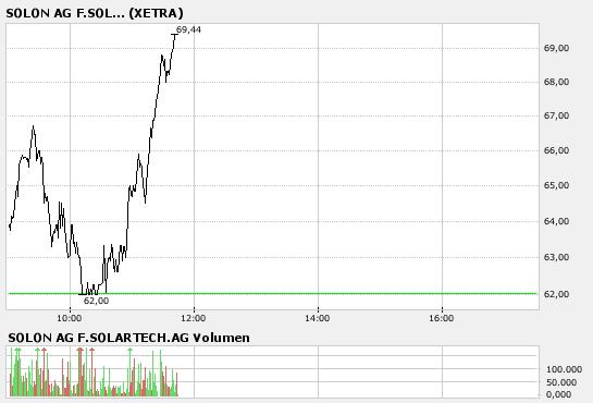 Bis jetzthabe ich auf diesem Board zwei (oer vielleicht ist es ja auch nur eine) Personen ausgemacht die immer wieder auf die gleiche Weise nerven. Das ist "Highmaster" und dieser "Wernerherzog" oder wie der heisst. Der eine postet alle 3 Minuten den RT Kurs und beschwört irgendwelche Rallys. Der andere postet alle 3 Minuten wieviel zigtausend Aktien er per Call oder Put tradet. @Highmaster: Wie bist du denn in Solon in investiert? Wieviele Positionen hast du denn zu welchem Kurs? Falls du uns nicht über die Anzahl in den Positionen aufklären magst, versteh ich, dann wenigstens die jeweiligen Kurse. Du hast ja gesagt, immer wieder nachzukaufen. Oder habe ich da was falsch verstanden. @alle anderen: Das gerade bei Solon, die ja in den letzten Wochen schon sehr volatil gelaufen ist, bei positiver Gesamtlage (China, USA usw.) ein Rebound wie wir ihn heute erleben nichts überrschandes ist, war ja bestimmt jedem klar. Mich würde aber mal interessieren bei welchem KGV eine Solon derzeit eigentlich noch gut, also nicht als teuer, bewertet ist. Gerade jetzt wo es bei den Solarfirmen heiss hergeht (siehe Conergy) stellt sich die Frage nach der Bewertung des Sektors.