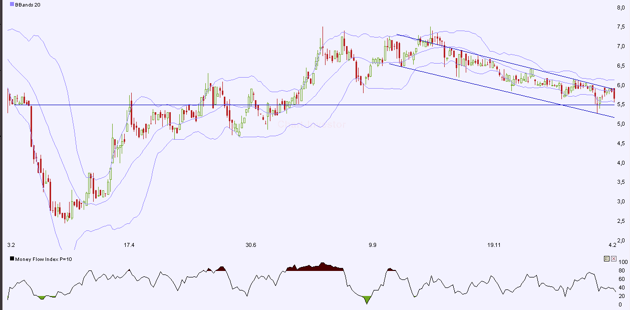 Eine ganz wichtige Marke liegt hier bei ca. 5,50€, dort befinden sich auch weiter zurück liegende Unterstützungen, deshalb habe ich einen etwas "längeren" Ausschnitt gewählt. Wenn ich die Wirtschaftsnachrichten so lese, dann müsste es auch bei Grammer wieder Arbeit und damit Umsatz geben. Warum also so negativ?