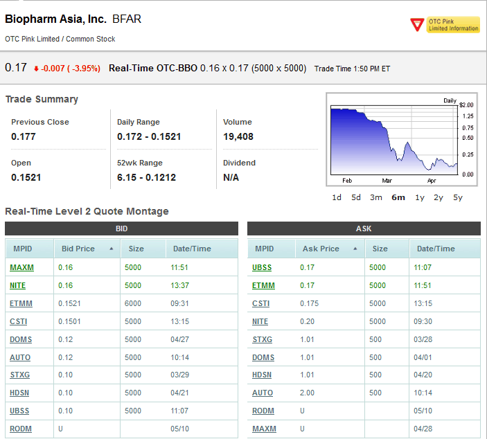 BFAR BioPharm Asia$0.19 Tradingchance auf 400-500%