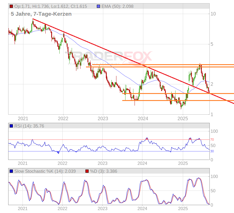 Der Kurs ist jetzt jedenfalls völlig ausgebombt, technisch wie fundamental. Im Daily gab es die letzten 5 Jahre nur einmal so ein niedriges RSI Niveau. Das war im September 2023.