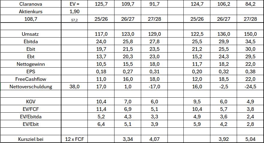 Und die Erwartung des Vorstand bzw. wie man den unteren Rand der Vorstandsziele für 27/28 erreichen würde (150 Mio Umsatz bei 23% Marge), was ich schon als best case betrachten würde.