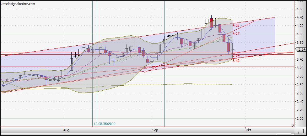 02.10.2009 09:26Sky wieder am Boden Die Aktie des Bezahlsenders liegt seit Wochen in einem strammen Abwärtstrend. Am Freitag belastet eine Herabstufung durch die UBS. Die Begründung der Analysten lässt Marktbeobachter aufhorchen. Die Experten zweifeln daran, dass Sky genug Abonnenten wirbt. Im dritten Quartal habe das Unternehmen voraussichtlich weniger als 100.000 neue Kunden gewonnen, schreiben die Analysten der UBS in einem aktuellen Kommentar. Damit sei zu bezweifeln, dass es Sky gelinge, sein Ziel zu erreichen, bis 2010 "bis zu 3,4 Millionen" Abonnenten zu werben. Die Aktie haben die Schweizer von "Kaufen" auf "Neutral" zurückgestuft, das Kursziel wurde von 4,20 Euro auf 3,80 Euro herunter genommen.