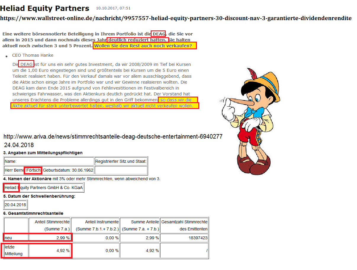 | Grundsätzlich muss man sagen, dass Schwenkow schon eine gewisse Kompetenz besitzt, die man in dieser Branche einfach benötigt. Dazu zählt ein sehr gutes Netzwerk, ein Gespür für neue Bereiche und Ideen und sicherlich einiges mehr. Seine Stärken liegen sicherlich nicht im betriebswirtschaftlichen Bereich und schon gar nicht in der Kommunikation und Austausch mit dem Kapitalmarkt. Klar ist aber auch, dass Quellmalz diese Rolle immer besser ausfüllt und auch den bis dato nicht vorhandenen Controllingbereich nachhaltig aufgebaut hat. Langsam spiegelt sich diese Entwicklung auch in den Zahlen wider. Sollte die Führung diese Aufteilung noch optimieren und keine waghalsigen Geschichten wie "Rock am Ring" betreiben wollen, dann bin ich vorsichtig Optimismus. Strategisch gut war, dass man sich von nicht rentablen Geschäftszweigen getrennt hat. Die Fokussierung auf gewisse margenstarke Nischen kann noch mal goldwert sein. Die Frage des "Abtretens" des CEOs ist insofern interessant, weil man dann vernünftige Alternativen haben müsste. Wenn es so wäre, dann ist ja ok. Die Bedeutung, die Schwenkow für DEAG hat - mit allen Fehlentscheidungen zum trotz - sollte man aber nicht unterschätzen. |