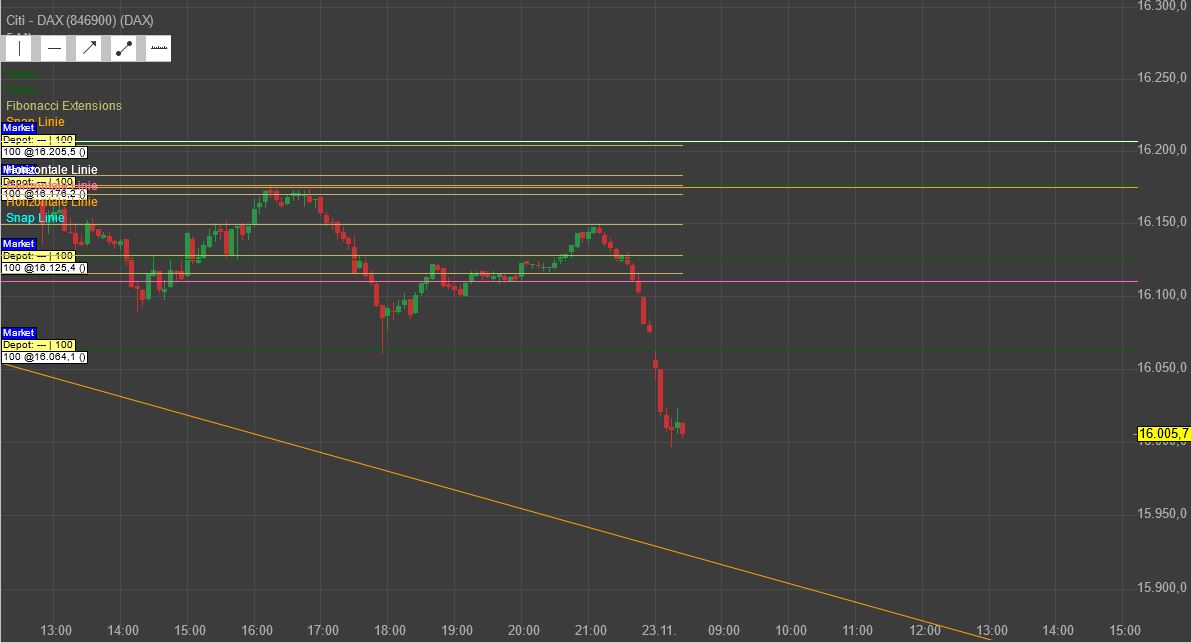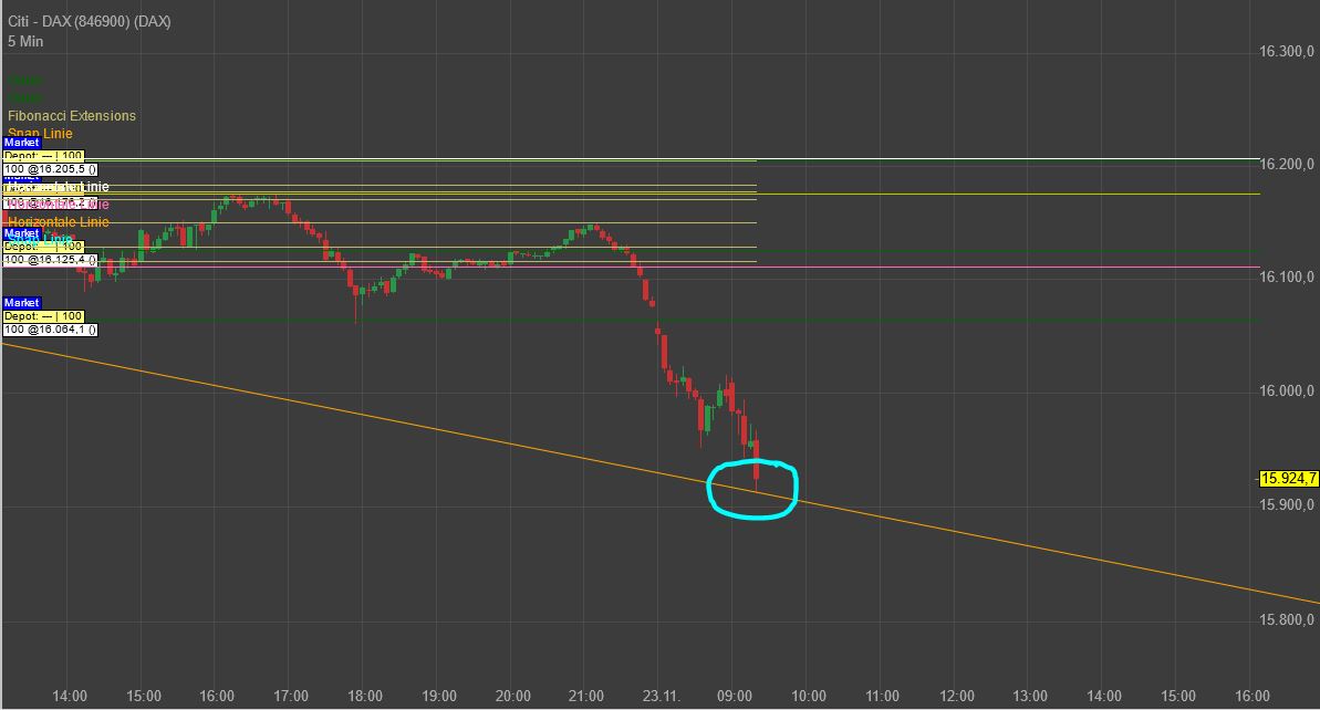 heftiger: bei 15.450 / kann gut sein, dass wir von dort aus nochmal den Trend an sich testen,