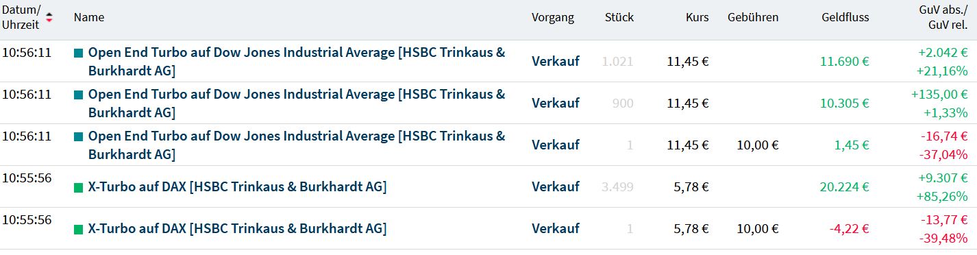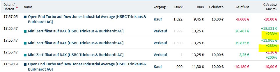 der Kurs bis zum vollständigen Kauf auch der höheren Zertis aber stieg!