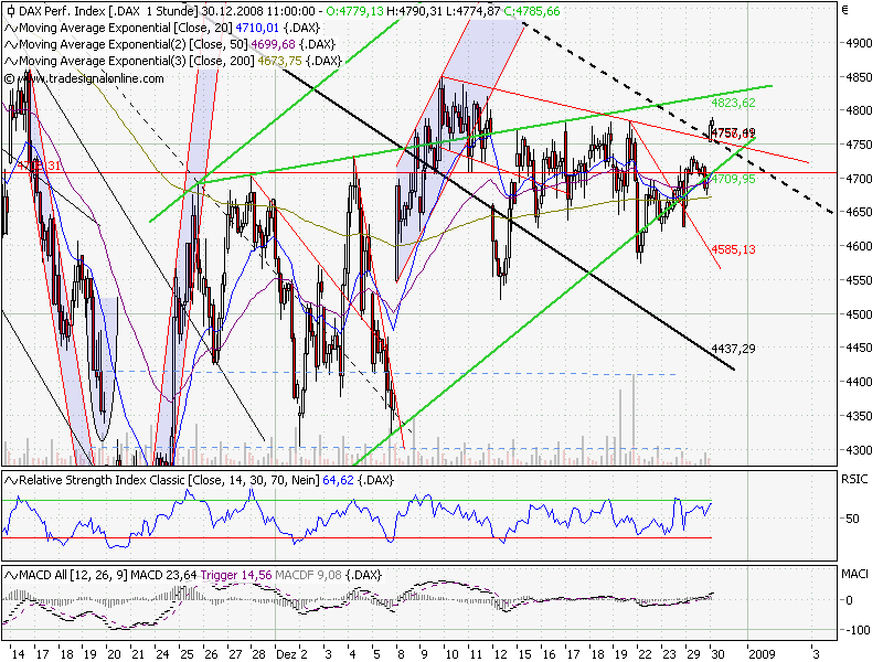 Man soll aber auch aus Fehlern lernen. Es ist nicht schlimm einen Fehler zu machen, aber es wäre dumm, immer wieder den gleichen Fehler zu wiederholen. Mein Vorsatz für 2009 ist daher: back to the roots. Will damit sagen, dass ich persönlich wieder mehr meine eigenen Analysen/Einschätzungen in den Focus stellen werde. Tradingempfehlungen von anderen Personen werde ich nicht weiter Verfolgen. Egal wie immer sich die Personen bezeichnen (ob Headtrader des Premiumservice, oder Spezialist oder Meister). Um es klar auszudrücken. Ich mache diesen Personen keinen Vorwurf, dass ich Geld verloren habe. Sondern, ich mache mir selbst den Vorwurf deren Weg gefolgt zu sein, und nicht meinen.