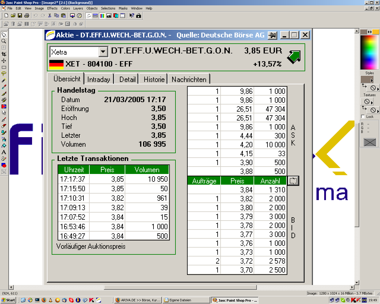 Wie einfach es ist, die Meute vor sich her zu jagen, wird uns doch live vorge- führt: heute bei JENOPTIK (runter) und bei DEWB (rauf). |