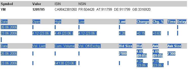 MISSISSAUGA, Canada – June 26, 2006 – YM BioSciences Inc. (AMEX:YMI, TSX:YM, AIM:YMBA), a company engaged in the acquisition, development and commercialization of oncology and acute care products, today announced that the independent Data Safety Monitoring Board (DSMB) for the pivotal Phase III trial of tesmilifene in metastatic and recurrent breast cancer has completed its first planned interim safety and efficacy analysis and concluded that the trial continue as planned. The interim analysis was based on 215 events (deaths) which occurred as of June 8th. The second of three planned interim analyses is designed to occur after 256 events and is expected to occur in the calendar third quarter of 2006. YM remains blinded to the study data.