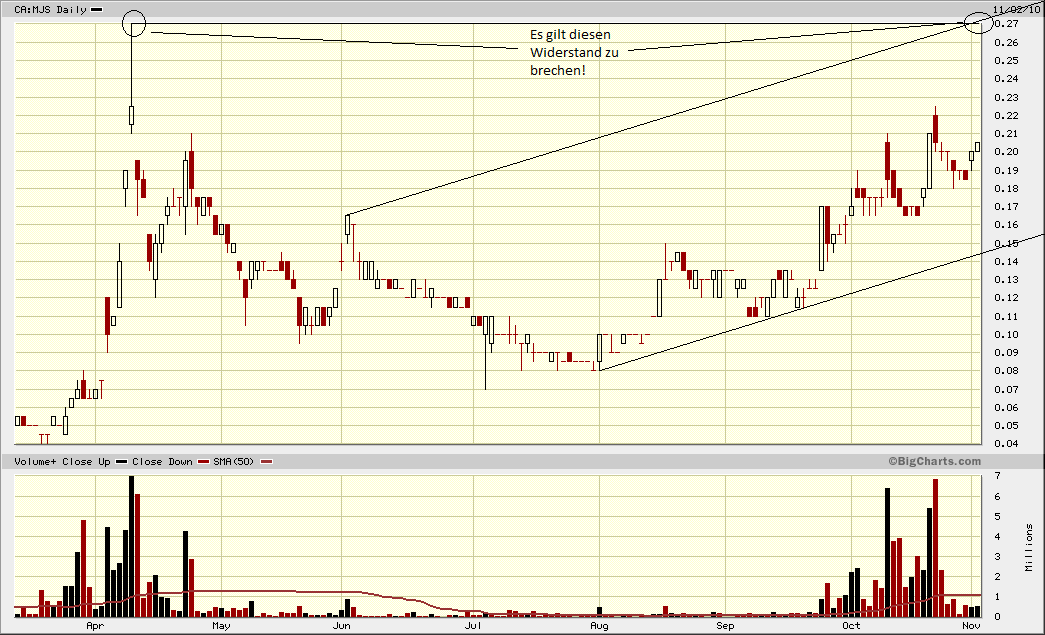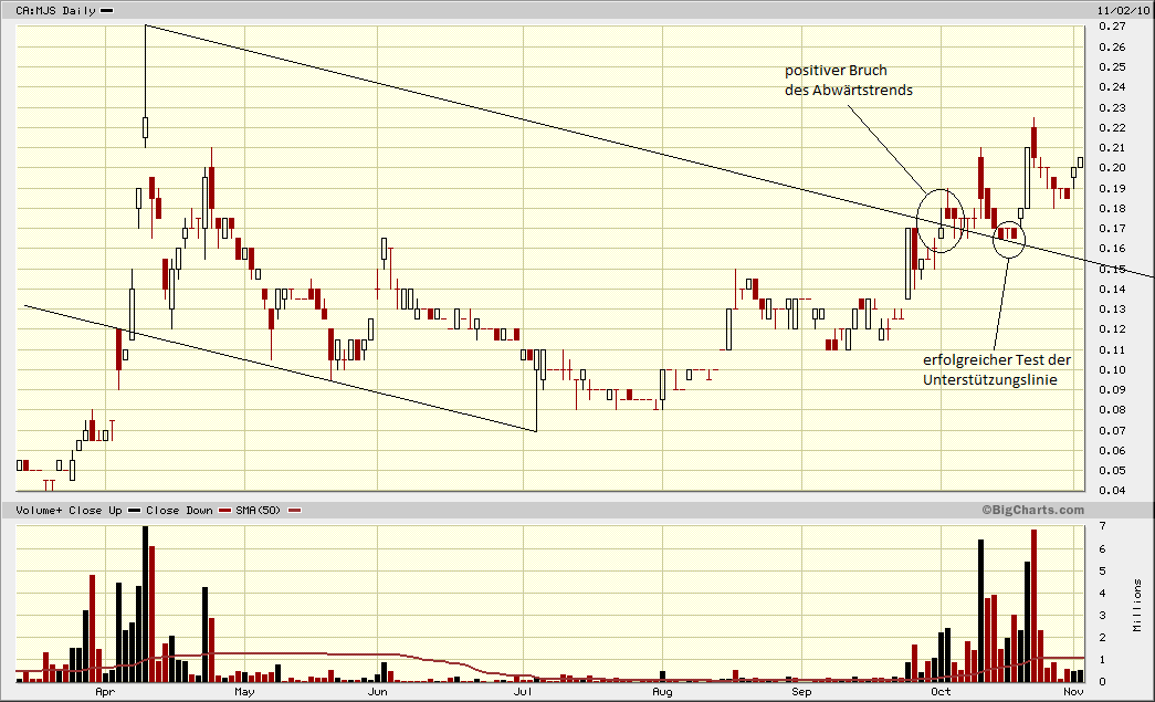So sehe ich die Charttechnik. Für mich gibt es kein Fehlsignal! Das Chartbild aus #136 bedeutet demnach für mich: Es ist sehr wahrscheinlich, dass der Kurs in naher Zukunft wie über 0,22 CAD gehen wird, für den Bruch der Marke um 0,27 CAD gibt es sozusagen noch keine "Aussage" vom Chart! ----------- Mein Real-Depot + Einstiegskurse: MMY (A0MSJR) 0,24€ YNG (A0MVD1) 0,605€ + MJS (A0BK1D) 0,135€ |