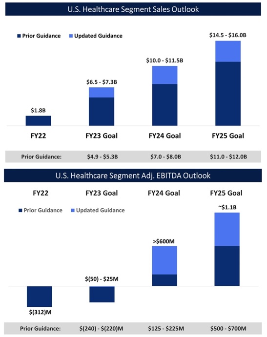 10Q, S. 36 The Company recorded a $6.5 billion liability associated with the Settlement Frameworks and other opioid-related claims and litigation during the three months ended November 30, 2022. The settlement accrual is reflected in the Consolidated Condensed Statement of Earnings within Selling, general and administrative expenses as part of the U.S. Retail Pharmacy segment. The Company recorded $619 million and $5.9 billion of the estimated settlement liability in Accrued expenses and other current liabilities, and Accrued litigation obligations, respectively, in the Consolidated Condensed Balance Sheet.