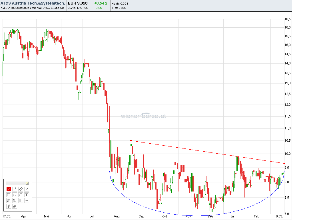 Auch die Charttechnik deutet ein Ende der Konsolidierung an (rounding bottom). Oberhalb von 9,6x könnte hier ordentlich die Post abgehen ..