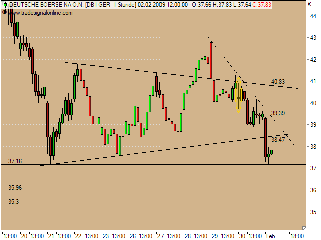 am freitag konnte der kurs der DB den widerstand 41,10 nicht überlaufen und drehte kurz darunter wieder nach unten weg.