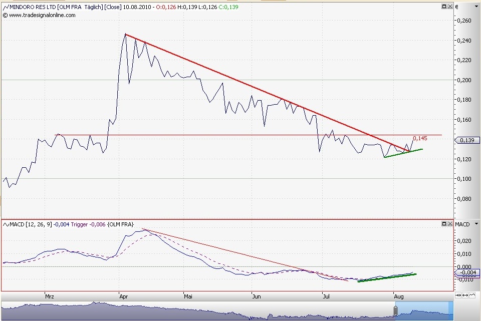 Im Frühstadium. Ist der Widerstand bei 0,145$ genommen, wird der weitere Vortrieb wesentlich unterstützt. Der erste Lichtblick nach dunklen 4 Monaten.