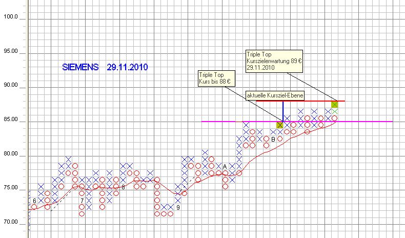 Nach einer längeren Konsolidierung über den Sommer hinweg ist der Kurs der Siemens-Aktie nun ausgebrochen und strebt nach neuen Höhen, so die Experten von "FOCUS-MONEY". Das Kursziel werde von 100 auf 105 Euro angehoben und ein Stopp sollte bei 70 Euro platziert werden. (Ausgabe 47) (18.11.2010/ac/a/d)