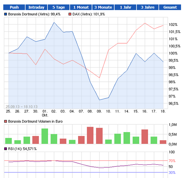 Ach Astar ich bin nicht so stark gebunden wie DU an so einem Forum denn ich lebe im realen Leben und genieße es am WE. Aber Du kann MICH anscheinend nicht vergessen.......;-) Ach so und jetzt wo ich hier reinschaue sehe ich das DU ja im MINUS bist mit deinem Invest:-) Tja auf den BVB setzt an der Börse kein Mensch mehr. Seit dem Anstieg in 02.13 auf ca. 3,30 EUro hat die Aktie noch nicht mal 10% zugelegt bis jetzt das ist LÄCHERLICH und ein KLARER UNDERPERFORMER. Was nicht steigt fällt irgendwann das solltest Du wissen. Wenn es morgen gegen Arsenal ne Klatsche gibt siehst Du die Aktie die nächsten 6 Monate nicht mehr über 3,60 Euro sondern eher unter 3 Euro. Sollten Sie gewinnen gehts auf 3,80 Euro um dann wieder binnen der nächsten Tage auf 3,60 Euro zu fallen. Hier wird abgezockt ganz klar. Die ANALYSTEN haben nicht umsonst Ihre Kaufempfehlungen gegeben. Da sollten die Kleinanleger WIE DU einer bist wieder herhalten und den großen zu völlig überteuerten Kursen die Aktien abzukaufen. ES FUNKTIONIERT IMMER WIEDER wie man schön sieht. DIE DUMMEN sterben halt NIE aus gelle ASTRA :-) Echt selten so eine schlechte Aktie gesehen die von Katjuscha gepusht wird. Wenn ich Kursziele von 6-7 Euro bis mitte 2014 lese wie von KATJUSCHA hier propagiert dann finde ich das eine riesen ABZOCKE und PUSHEREI. Absolut lächerlich solche Kommentare aber er wird auch noch einsehen das er einen riesen FEHLER gemacht :-) |