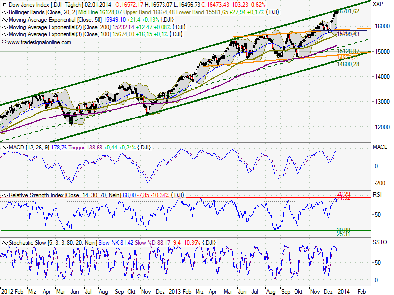 Zuvor kann es allerdings noch weitere Tiefs bis 9370/9340 gehen Widerstände warten bei 9425/9470 und 9535/9550. Bei unvermindertem Verkaufsdruck kommen Ziele bei 9195/9227 und 8980/9000 in Reichweite.