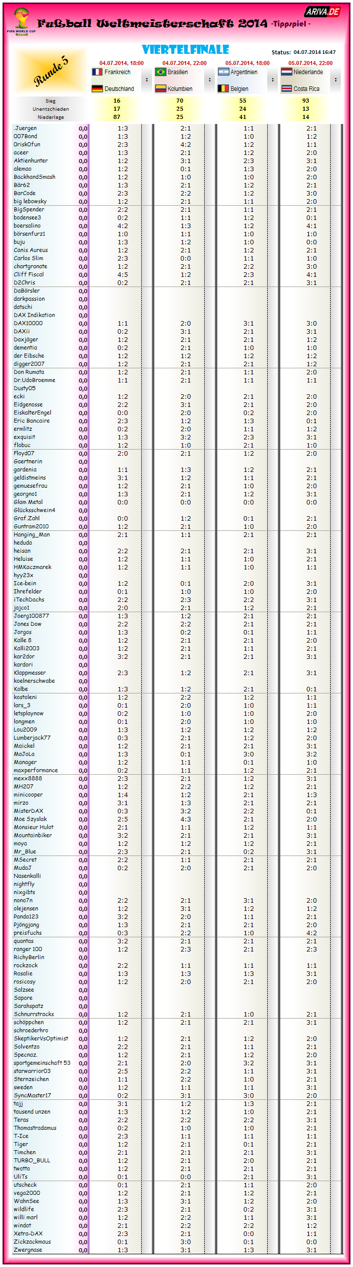 see u ab 18Uhr (ARG-BEL) dann wieder hier >> http://www.ariva.de/forum/Talkthread-zur-WM2014-Gruppe-492337