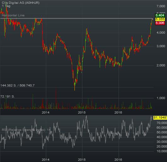 • 3-Jahreshoch: Cliq Digital AG stock Price is close to 3-year high