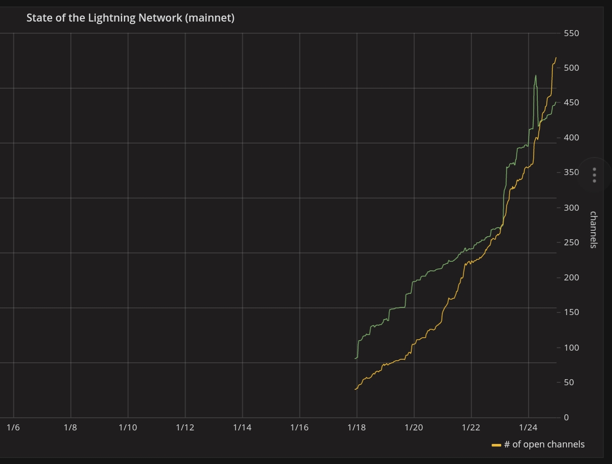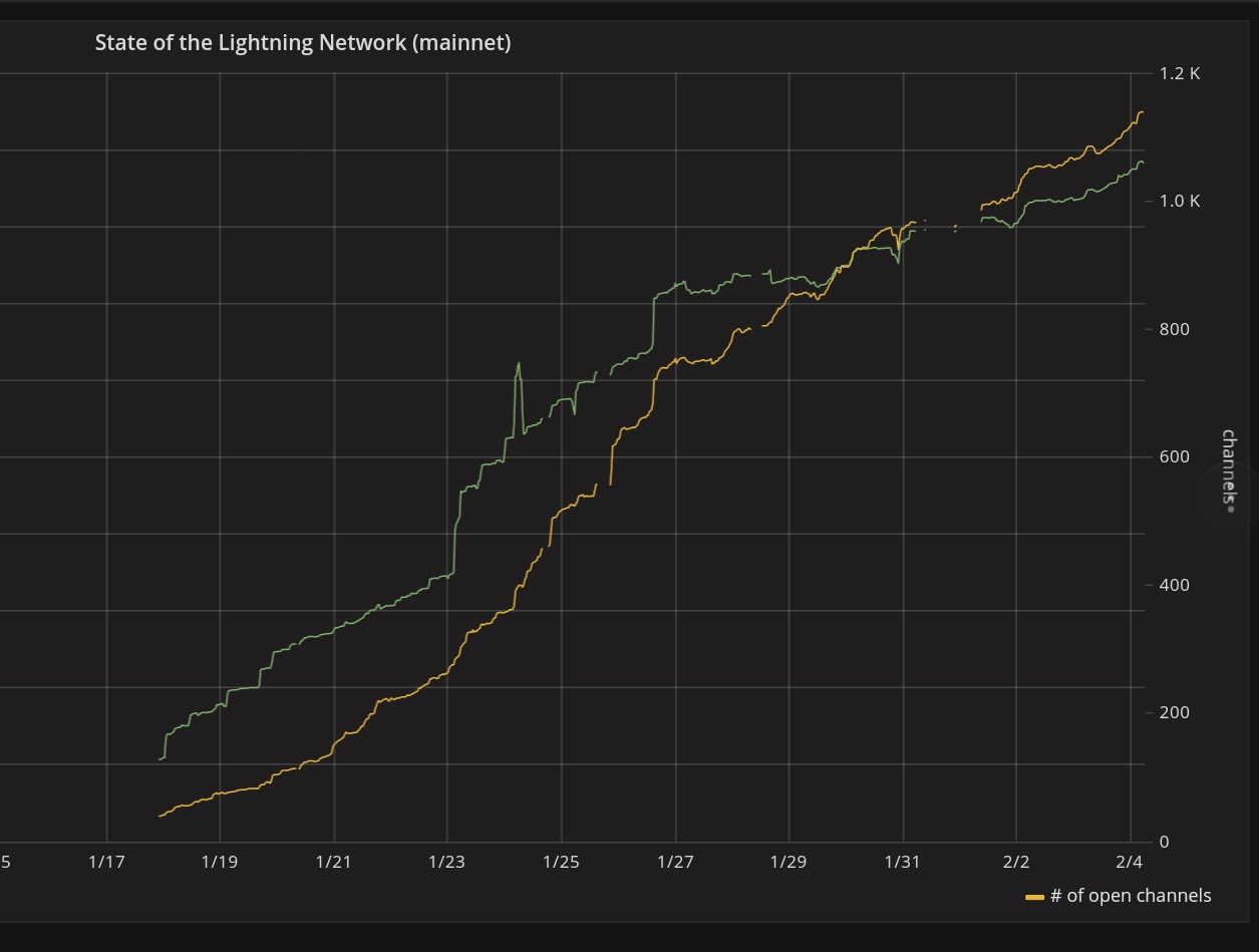 More and more Lightning Network channels are being created each day, increasing by 500% from just 6 days ago...