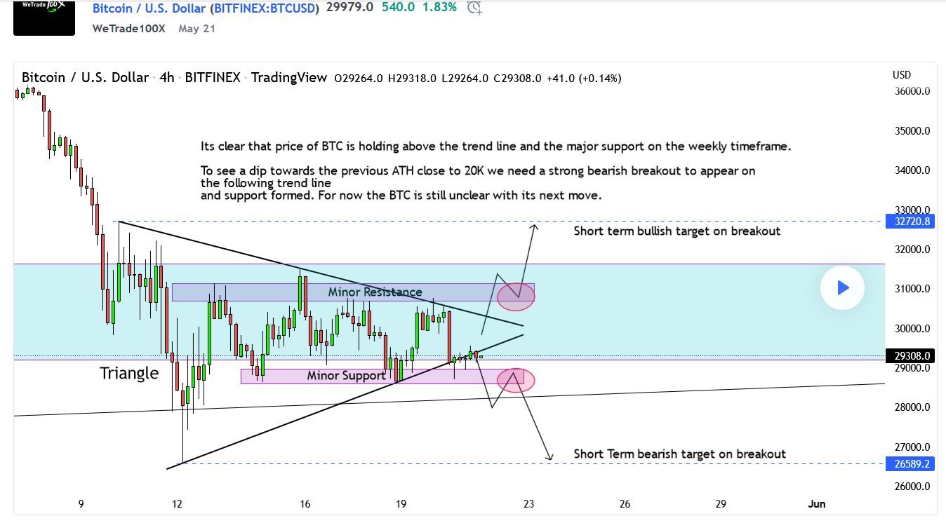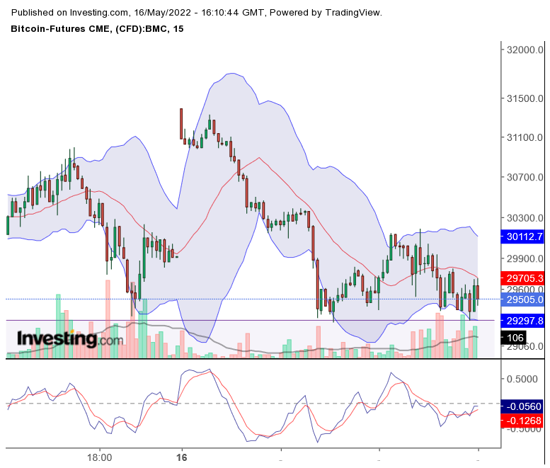 Bitcoin, the largest digital-asset by market value, dropped as much as 5% to $28,706 on Friday. The S&P 500 dipped 20% below its January peak on an intra-day basis.