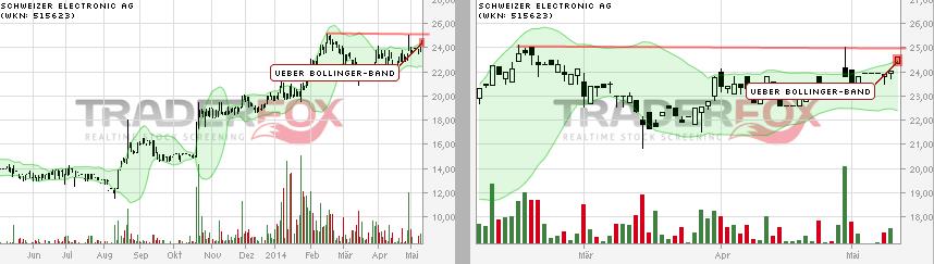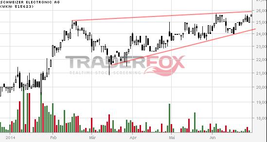 Gemessen an den Erwartungen der Analysten konnte der Leiterplattenspezialist aus dem Schwarzwald mit einem 2013er-Überschuss von 6,13 Mio. Euro [€1,62 je Aktie] allerdings nicht ganz überzeugen. Hier rechneten die Experten mit einem Zuwachs auf 6,4 bis 6,8 Mio. Euro. Dafür setzte die Gesellschaft mit ihrer Dividendenerhöhung von 0,55 auf 0,60 Euro je Aktie ein positives Signal. Das entspricht einer Dividendenrendite von 2,6 Prozent – bis zur Ausschüttung der Gewinnbeteiligung nach der Hauptversammlung am 4. Juli 2014 ist es aber noch eine Weile hin. Ansehnlich ist die Prognose: Für 2014 rechnet Vorstandschef Marc Schweizer mit einem Erlösplus von drei bis sieben Prozent. Beim Ergebnis kündigt er aufgrund höherer Abschreibungen und weiterer Investitionen in Produktionsanlagen zunächst einmal nur eine „leichte Verbesserung“ an. Für 2015 sieht er ebenfalls steigende Gewinne, ohne das Wachstumstempo näher zu beziffern. Dennoch: Für boersengefluester.de bleibt der Small Cap überdurchschnittlich interessant. Der Börsenwert von 87 Mio. Euro liegt um annähernd 20 Prozent unterhalb des für 2014 zu erwartenden Erlösniveaus. Die Dividendenrendite ist immerhin durchschnittlich, zudem punktet der Titel mit einem moderaten KGV von rund 12,5. Die Analysten von Montega Research hatten zuletzt ein Kursziel von 28 Euro genannt.