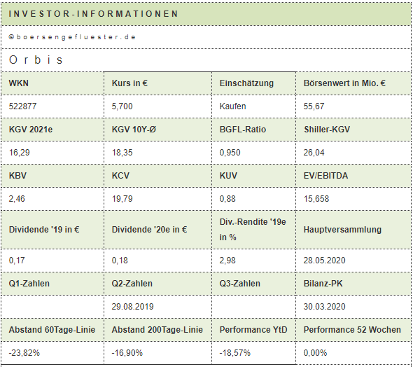 Dabei gehört die Orbis AG zu einem der nachhaltigsten Dividendenzahler in Deutschland. 2020 soll mittlerweile zum zehnten Mal in Folge nicht nur eine Dividende gezahlt, sondern diese auch zum zehnten Mal in Folge angehoben werden! Ein Qualitätsmerkmal, was nicht viele kleinere IT-Dienstleister von sich behaupten können.