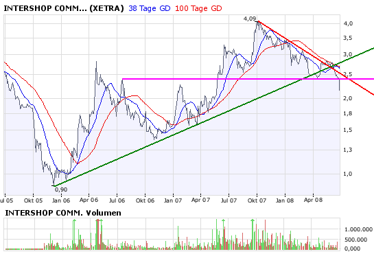 den Aufwärtstrend einleitet, dann steige ich auch wieder ein. Sollte der Aufwärtstrand eher erfolgen, steige ich eher ein, sollte er später erfolgen, dann steige ich später ein. Sollte der Aufwärtstrend gar nicht erfolgen, steige ich gar nicht wieder ein. Es ist doch besser, den Aufwärtstrend abzuwarten und bei 3,50 oder auch 4,- € einzusteigen, als jetzt das Risiko eingehen und der Kurs fällt weiter auf 1,- € ohne Aufwärtstrend. Lieber etwas weniger Gewinn, als hohe Verluste. Denke immer, es kann tiefer gehen, als man glaubt, es kann aber auch höher gehen, als man glaubt. Also, bei einer eindeutigen Trendwende werde ich wohl wieder dabei sein. Ich glaube aber nicht, dass Bruckner diese Trendwende herbeischreiben kann. dann nutzt ihm auch die Väkalsprache nicht, in die er teilweise abgleitet.