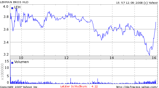 Die Aktie von Lehman Brothers verliert aktuell 12,09 Prozent auf 3,71 Dollar.