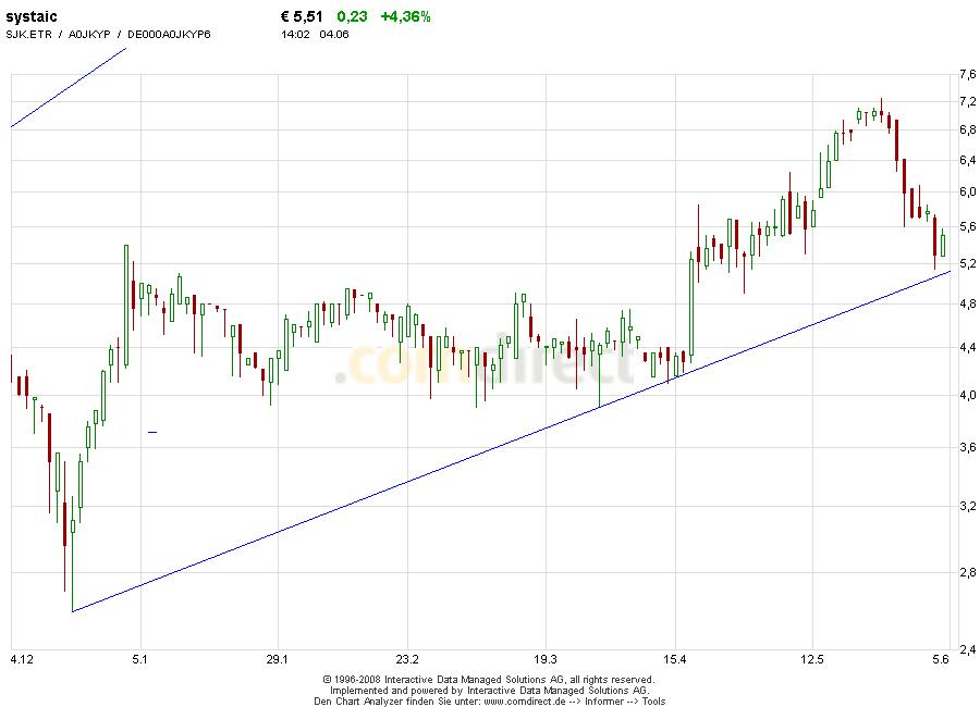 Phönix Solar entwickelt sich z.B. sehr prächtig. Es sieht wieder düster für Systaic aus, wenn es tatsächlich unter 5€ gehen sollte und wir die 4 vor dem Komma sehen...
