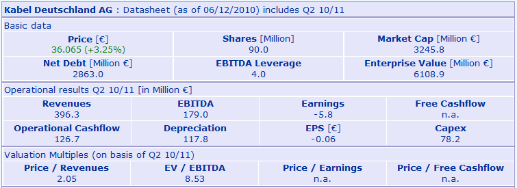 Die Kabel Deutschland Aktie zieht nach dem Rücksetzer an den Unterstützungsbereich bei 43,51 - 44,10 Euro jetzt wieder nach oben zu den Allzeithochs bei 47,99 - 48,91 Euro. Sie ist weiterhin einer der stärksten Werte und zeigt kurz- wie mittelfristig sehr konstruktive Chartmuster.