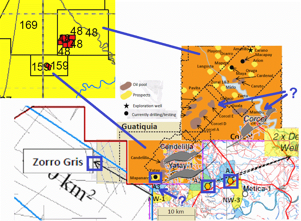 In diesen Blöcken gibt es bereits mehrere neue Discoveries (2012), die bereits produzieren, allerdngs nicht von der Qualität wie Corcel und Guatiquia.