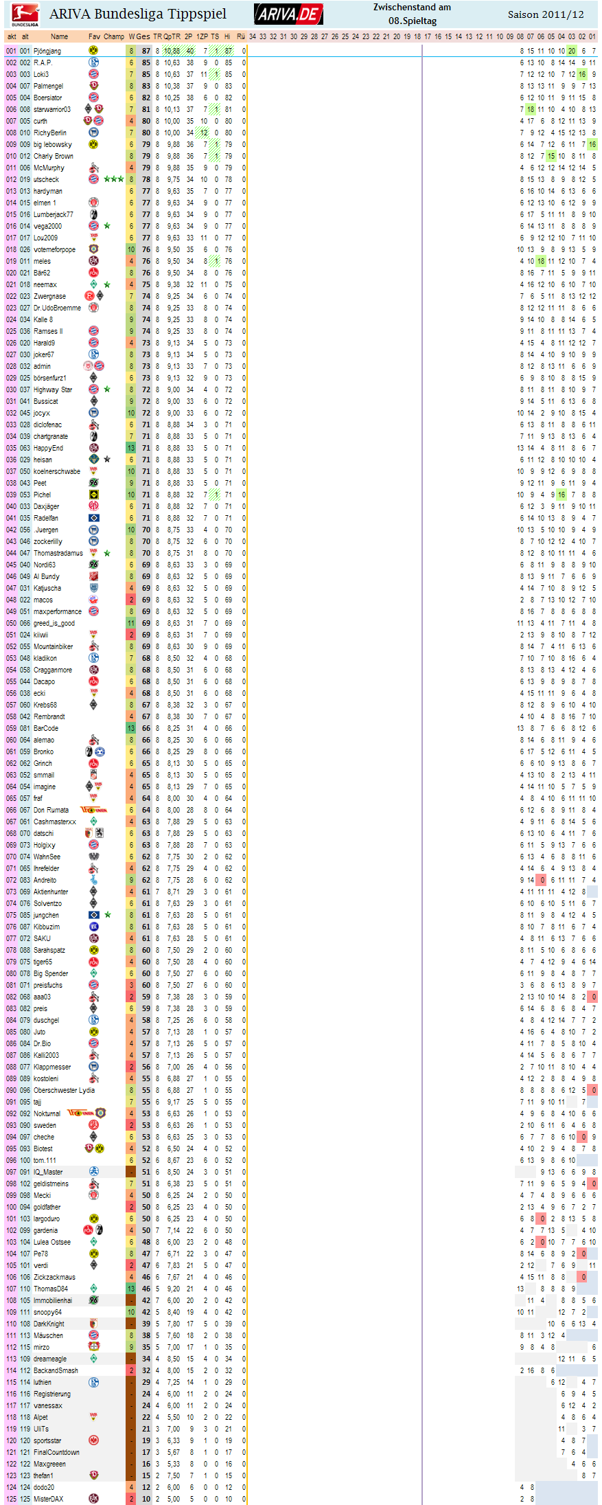 01.10.11 18:14 #151 Zwischenstand Tagessiegerwertung Spieltag 08.