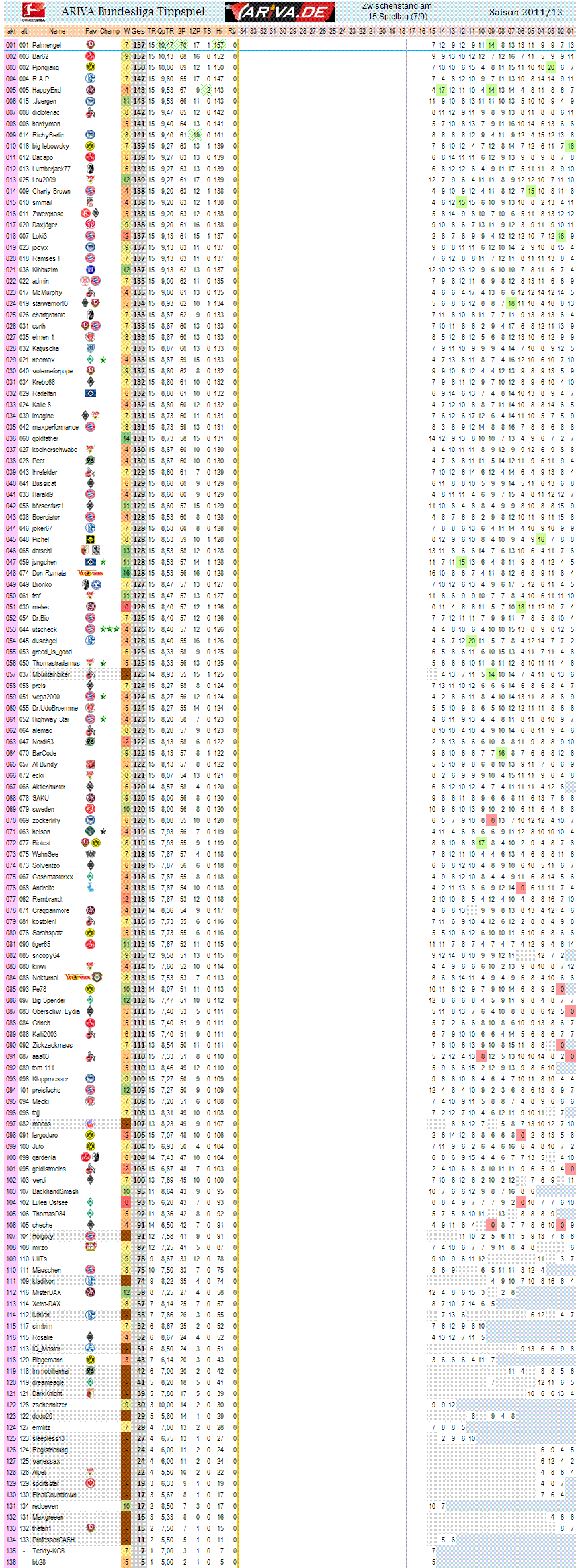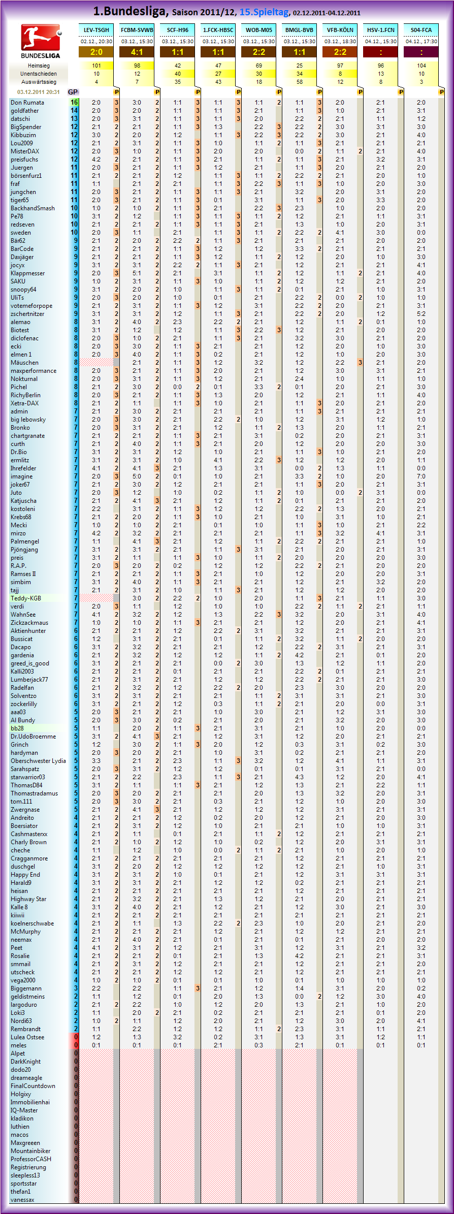 1.Bundesliga, Spieltag 15