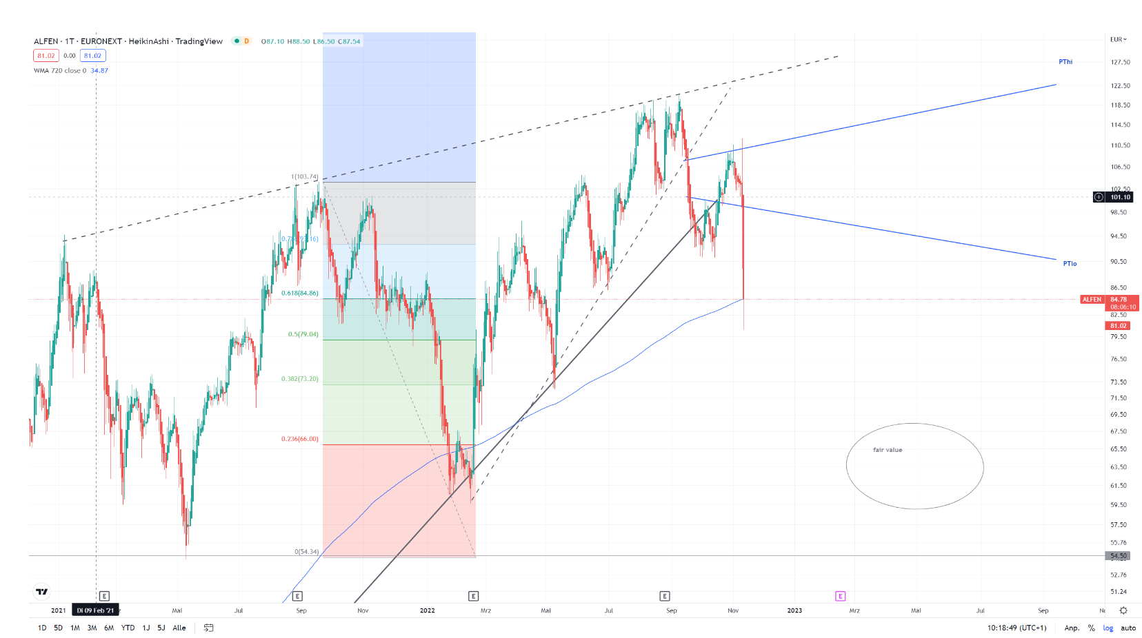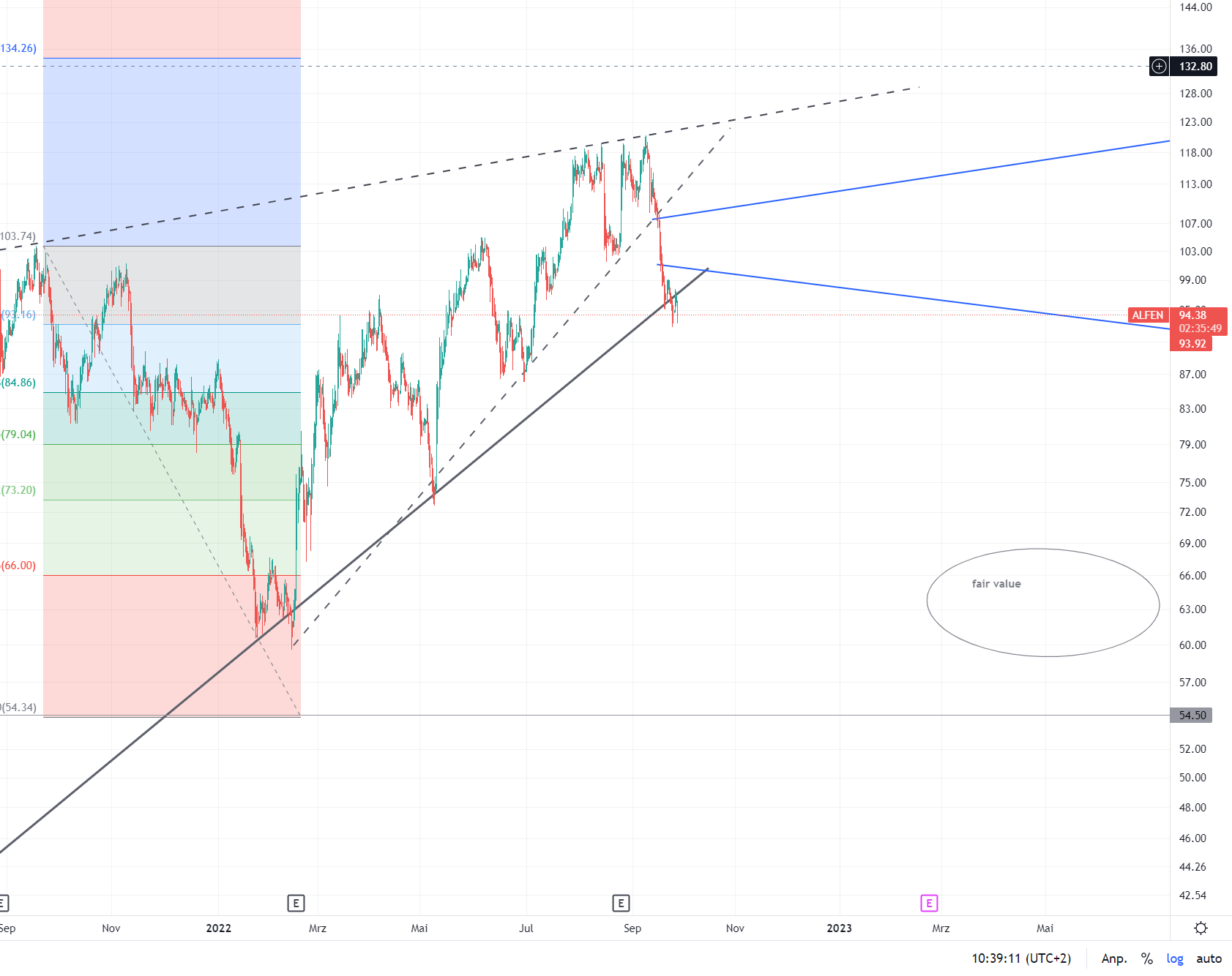 bei Alfen ist mein Strategie gestaffelt einkaufen, erste Position gekauft, zweite unter 80 und dritte unter 70 Euro, denk max. geht es bis 65 Euro runter