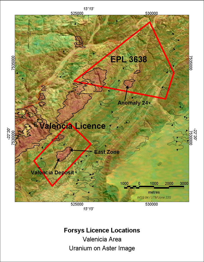 The first licence granted under this partnership is located approximately 7.5 km northeast of the Valencia uranium deposit presently the subject of an independent pre-feasibility study (see Forsys news release of 5 November 2006).