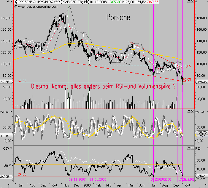 Es ist schön zu wissen, dass die eigenen Vorstände an Ihr Unternehmen glauben. Doch leider sieht das derzeitige Umfeld für solche Solidaritätsaussagen (gelinde gesagt) etwas "unschön" aus. Zur vorhandenen Panik gesellt sich noch die unsicheren Zukunftsaussichten des Porsche/VW-Deals.