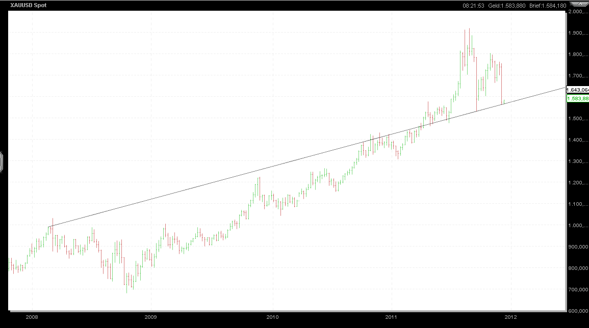 `N Abend, habe mir heute mal den letzten Bericht von Barrick Gold (grösster Minenproduzent) angeschaut. Demnach lagen die Förderkosten im dritten Quartal bei 622 USD je Feinunze. Die verdienen ja richtig Kohle bei einem Preis pro Unze von 1600 USD! Man sollte unter diesem Aspekt vielleicht doch vermehrt die Minenaktien denken. Es wird ja in diversen Foren immer propagiert Gold könne gar nicht unter 1000 USD fallen, da die Produktionskosten ja schon so hoch wären. Aha, gut zu wissen, wie hoch sie tatsächlich sind. Demnach könnte "die Fallhöhe" durchaus deutlich unter der 1000 USD-Marke liegen? Das will natülich niemand hören, verständlicherweise.... Bei Silber sieht es eigentlich ähnlich aus. Auch hier liegen die cash costs unter 8 USD! Das sollte zu denken geben. Werde die weitere Entwicklung genau verfolgen, um die Positionen entspr. abzusichern. Schönen Abend SV 13.12.2011 11:32:47 Barrick Gold Risiken in Bewertung ausreichend berücksichtigt Düsseldorf (aktiencheck.de AG) - Die Experten der "Wirtschaftswoche" sehen die Aktie vonBarrick Gold vor einer Neubewertung. Solide Qualität und viel Gold im Boden, so würden die Experten die Situation der Goldminen-Aktie von Barrick Gold umschreiben. In der Bewertung der großen Goldförderer seien die Risiken einer hohen Verschuldung sowie politischer und eigentumsrechtlicher Art mehr als ausreichend berücksichtigt. Nach Auffassung der Experten wirke das Chance/Risiko-Profil des weltgrößten Goldkonzerns Barrick Gold besonders attraktiv. 26 operierende Minen auf fünf Kontinenten würden für eine Streuung regionaler Risiken sorgen und damit die Abhängigkeit von einzelnen Standorten senken. Der Minenkonzern habe im dritten Quartal 2011 1,9 Mio. Unzen Gold zum Preis von 622 USD je Unze produziert und das Gold zu 1.742 USD je Unze verkaufen können. Daneben seien 6.350 Tonnen Kupfer zum Preis von 4.850 USD je Tonne gefördert worden, die dann für 7.806 USD je Tonne vermarktet worden seien. So habe der Konzern aus dem operativen Geschäft Mittelzuflüsse von 1,9 Mrd. USD generiert und damit die innere Finanzkraft gestärkt. Dadurch lasse sich die Nettoverschuldung von derzeit 10 Mrd. USD gut beherrschen. So habe Standard&Poor's die Bilanzqualität des Unternehmens mit "A-" als solide eingestuft. Sofern der Goldpreis auf über 1.760 USD je Unze steige, sei charttechnisch der Weg in Richtung 2.100 USD je Unze offen. Somit seien auch die Chancen auf neue Höchststände der Aktie von Barrick Gold gegeben, da die Gewinnspanne weiter steige. So könne die nahezu zwanzig Jahre dauernde Konsolidierungsphase mit einem nachhaltigen Kursanstieg über 55 CAD (Kanadische Dollar) beendet werden. Nach Ansicht der Experten der "Wirschtaftswoche" wäre bei der Aktie von Barrick Gold eine Neubewertung fällig und sie setzen bei einem aktuellen Kurs von 51,59 CAD den Stopp-Kurs bei 44,30 CAD. Das 2011er KGV liege bei 10,5 und für das 2012er KGV werde ein Wert von 8,6 ermittelt. (Ausgabe 50) (13.12.2011/ac/a/a) Offenlegung von möglichen Interessenskonflikten: Mögliche Interessenskonflikte können Sie auf der Site des Erstellers/ der Quelle der Analyse einsehen. |