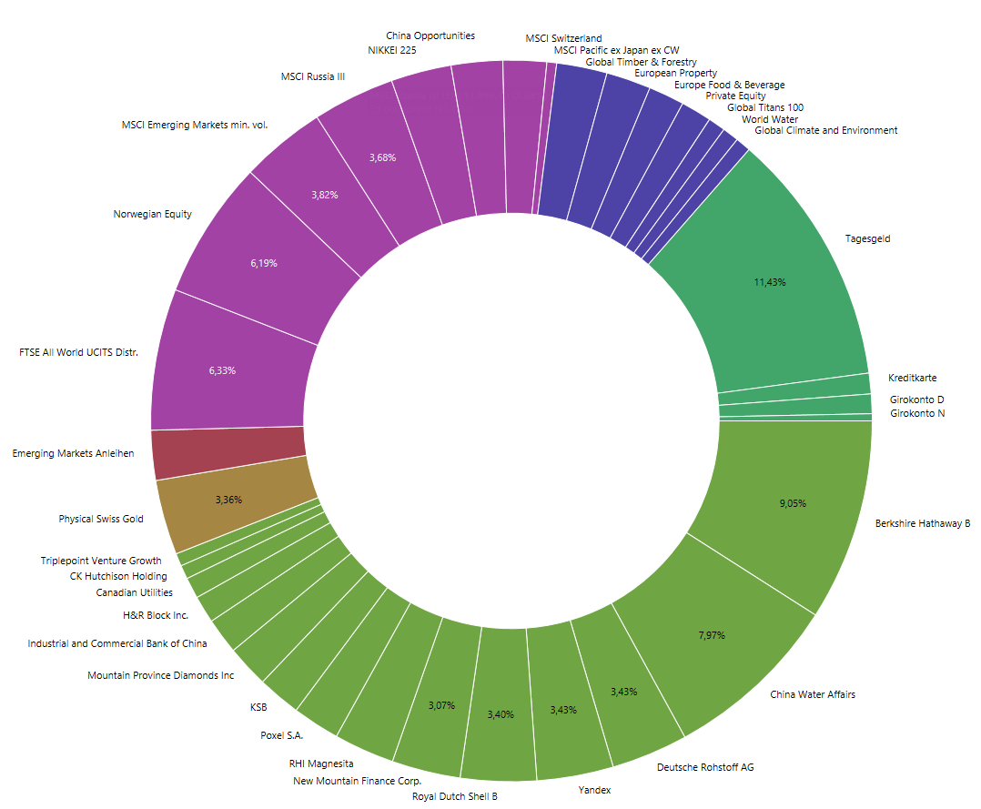 Weiter unten füge ich eine Aufstellung der Gesamtvermögensverteilung ein. Nur zur groben Orientierung: