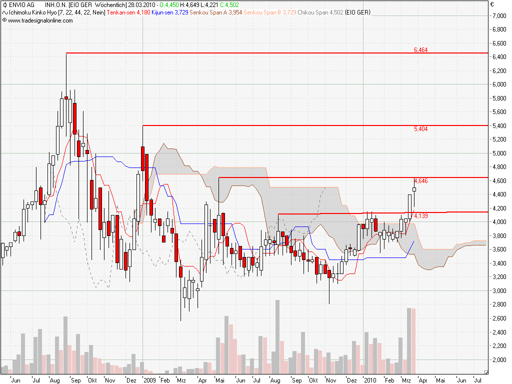 Die Schätzungen für das Jahr 2010 sind sehr konservativ. Die Chancen einer positiven Überraschung stehen gut. Schafft es die Firma tatsächlich, mit ihrer Aufbereitungsanlage für Biogasanlagen eine dicken Fußabtritt zu hinterlassen, könnte das dem Aktienkurs einen deutlichen Schub geben. Legen sich Anleger jetzt die Aktie ins Depot, können sie sich an der geplanten neuen Gesellschaft beteiligen. Doch auch so ist Envio mit einem geschätzten Kurs-Gewinn-Verhältnis von rund zehn immer noch günstig zu haben.