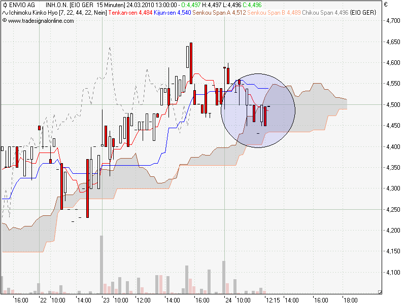 der kurs ist schon bereits in der wolke und die rote linie hat die blaue von oben nach unten durchstoßen.