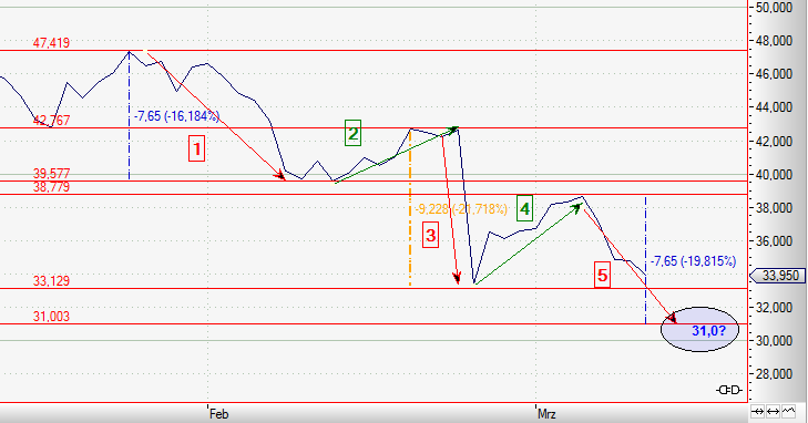 Da hier aber mit den massiven Shortattacken die "normalen" Muster der Chartanalyse rein psychologisch in den Hintergrund treten (wer feststellt, dass WDI sich Vorwürfen ausgesetzt sieht, das Unternehmen diese nicht ganz konkret und beweisend zurückweisen kann, bekommt Angst, die er/sie sonst nicht hätte. Kaufkurse, Unterstützungen etc. spielen beim Kurssturz um 25% (24.2.) keine Rolle. Der Kurs bleibt nicht an besonderen Kursmarken hängen.