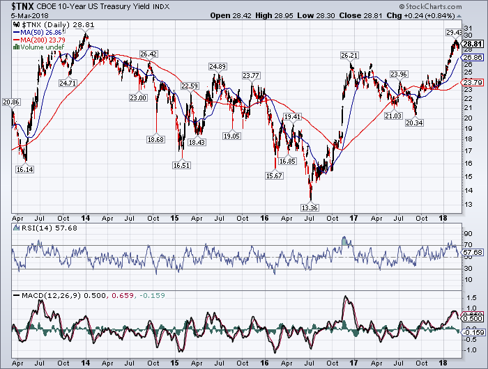 Die vielbeachteten Zinsen der 10jährigen US-Treasuries befinden sich mittlerweile seit einem Monat im Sinkflug, das vielfach angekündigte rasche Break über die 3%-Hürde entpuppte sich bislang als prognostischer Schuss in den Ofen.