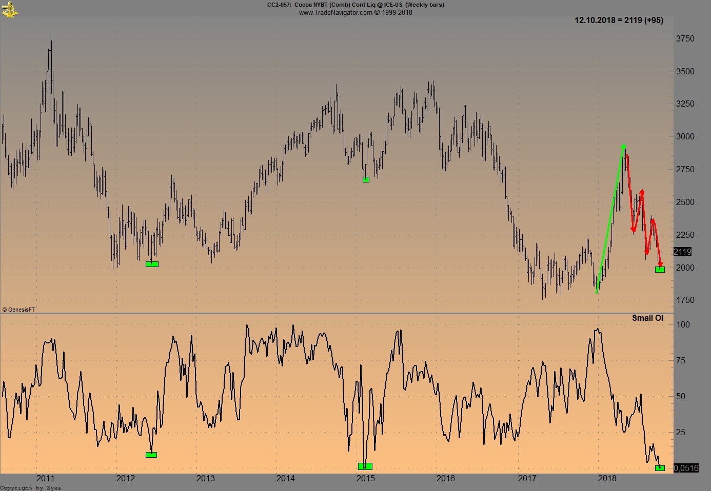 Wenn ich jedoch den Small in meine Betrachtung miteinfliessen lasse, so denke ich Kakao steht sehr nahe an einem Tief.
