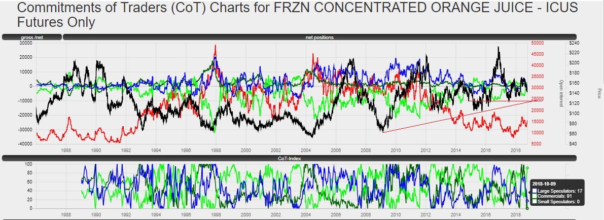 Bei meinem Post vom 10 Oktober war die Netto-Long-Positionierung der Commercials bei +20.527 Kontrakten.