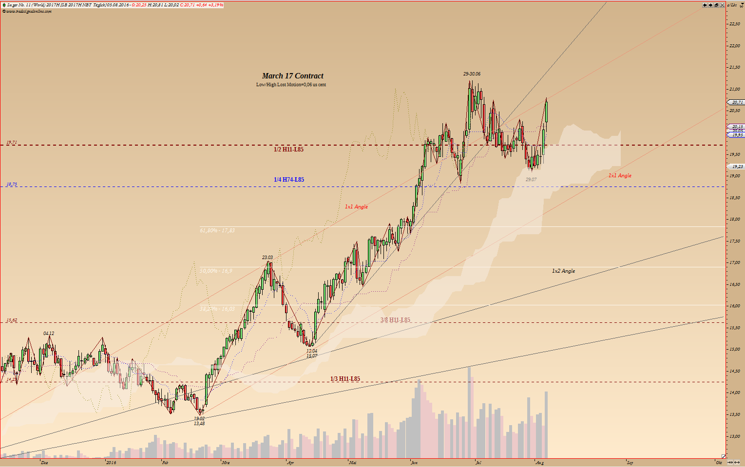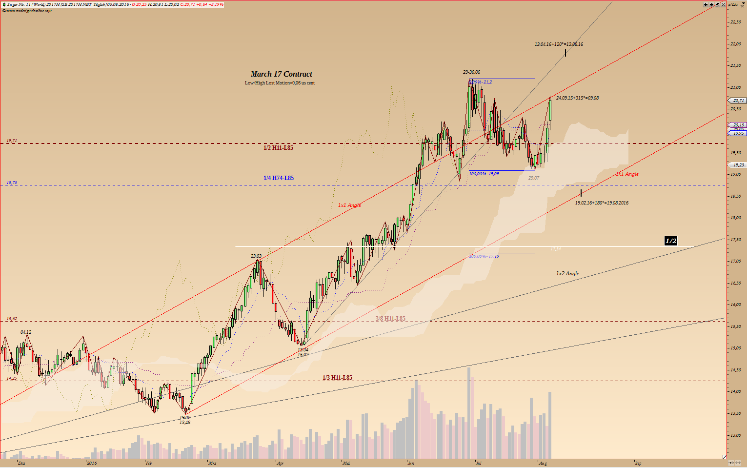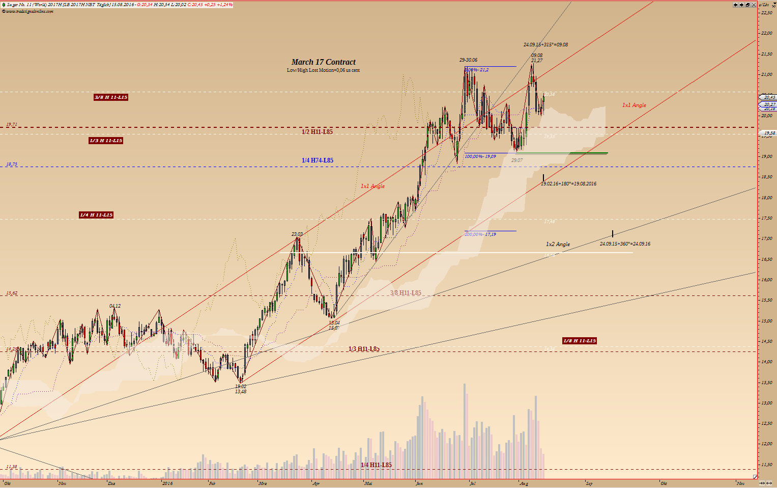 alles ist gut. Du hast alles richtig gemacht. Situation unklar, unsicher - Trade zu gemacht. Bevor man anfängt zw. Angst und Hoffnung springen - raus aus dem Markt... Für mein Short ist da einfacher. Folgende Lage liegt vor: laut Zyklen - Doppeltop (auch wenn mit Verzögerung), Korrektur und danach "richtiger" Anstieg. Diesem "vermuteten" Anstieg gegenüber, ist bis jetzt laufender (ab februar) lediglich "kleiner Kram" dagegen gewesen... so meine Vermutungen. Doppeltop hat sich mehr oder weniger angekündigt, bestätigt wird er, wenn Tief vom 29.07 unterboten wird. Short ist jetzt also zunächst auf Verdacht. Die Reißleine für diesen Trade liegt bei Hochs 30.06 und 09.08. Werden diese Hochs mit Schlusskurs demnächst überboten - Trade läuft gegen den Short und man müsse Short auf Long drehen... Die wieder aufgetauchte Aufwärtstendenz in diesem Fall wird gewaltig. Aber erst dann weiß ich, dass diese Korrektur, die langfristige Zyklen versuchen durch zu boxen, durch kurzfristige aufgehoben wird, den 5, 10 und 13 jährige Zyklen steigen. Ab der 46 KW wird dann dieser Trend noch mal verstärkt, den ab da steigen auch die langfristige Zyklen... ----------- "Hoffnung, Angst und Gier lassen sich nicht mit einer Erfolgreichen Trading-Strategie vereinbaren" W.D. Gann |